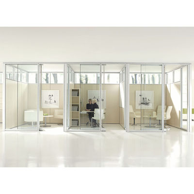 Interieur moderne glazen muur met aluminium structuur voor kantoorruimten.bevordering van zowel transparantie als productiviteit. Ideaal voor het creëren van open vergaderruimtes of voor het garanderen van voldoende natuurlijk licht voor alle werknemers.